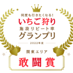 おかげさまで、旅行観光サイト『じゃらん』のいちご狩り施設『何度も行きたくなる!いちご狩り施設リピート率グランプリ』において